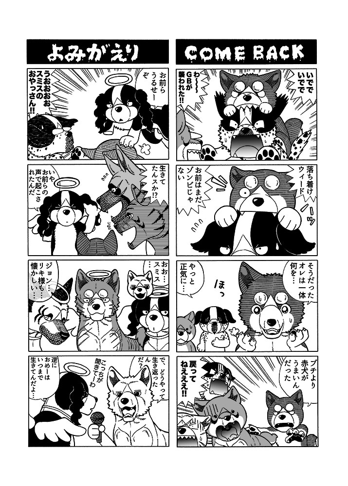 銀牙外伝 ZOMBIES #1-2 ハイエナも生きてた…笑(銀牙伝説ノア)。 Post date 2024年9月4日 Posted by しろうと Posted in マンガ Tagged with 4コマ漫画, 二次創作漫画 Previous post: 銀牙外伝 ZOMBIES #1-1 Next post: 祝!高橋よしひろ先生画業50周年